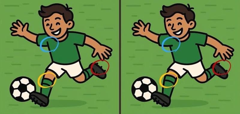 Jeste li spremni testirati se? Pogledajte dvije slike nogometaša. Na prvi pogled potpuno su identični, no u njima se kriju tri suptilne razlike. Možete li ih pronaći za samo 23 sekunde?