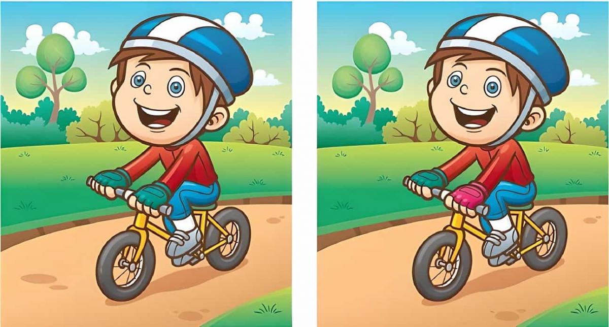 Ovdje su dvije slike dječaka koji vozi bicikl. Vaš zadatak je pronaći 4 razlike u samo 12 sekundi. Nije tako jednostavno kako se čini: razlike se mogu sakriti u bojama, oblicima ili čak i u najsitnijim detaljima.